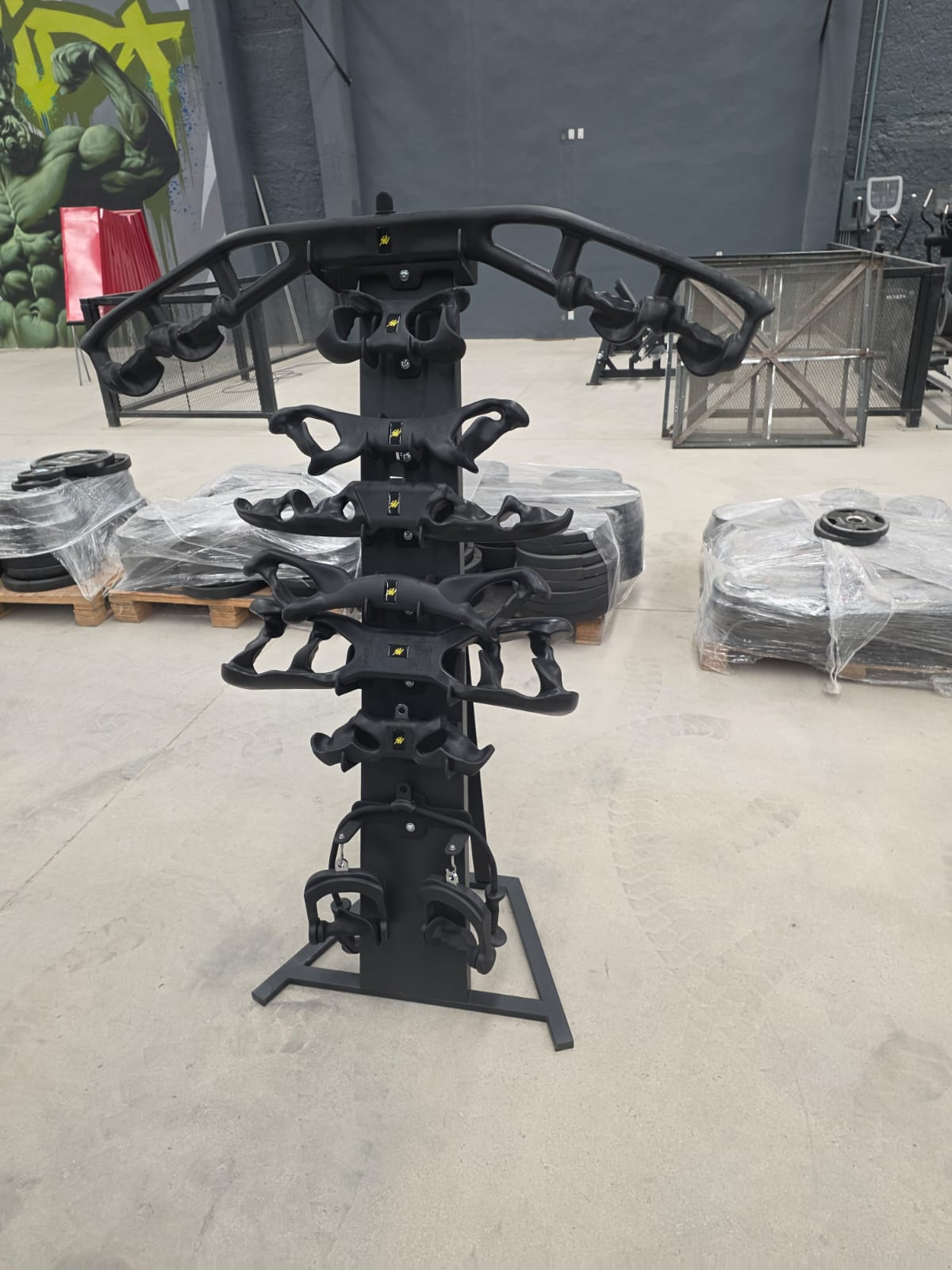 Handle Accessories + Rack está diseñado para el almacenamiento organizado de accesorios de entrenamiento como manerales, agarres y aditamentos de poleas, los cuales se incluyen con el equipo. Su estructura vertical optimiza el espacio, permitiendo un acceso rápido y ordenado a cada accesorio. Fabricado con materiales de alta resistencia, garantiza estabilidad, durabilidad y un uso intensivo en gimnasios de alto tráfico. Ideal para mantener el área de entrenamiento limpia, funcional y eficiente.