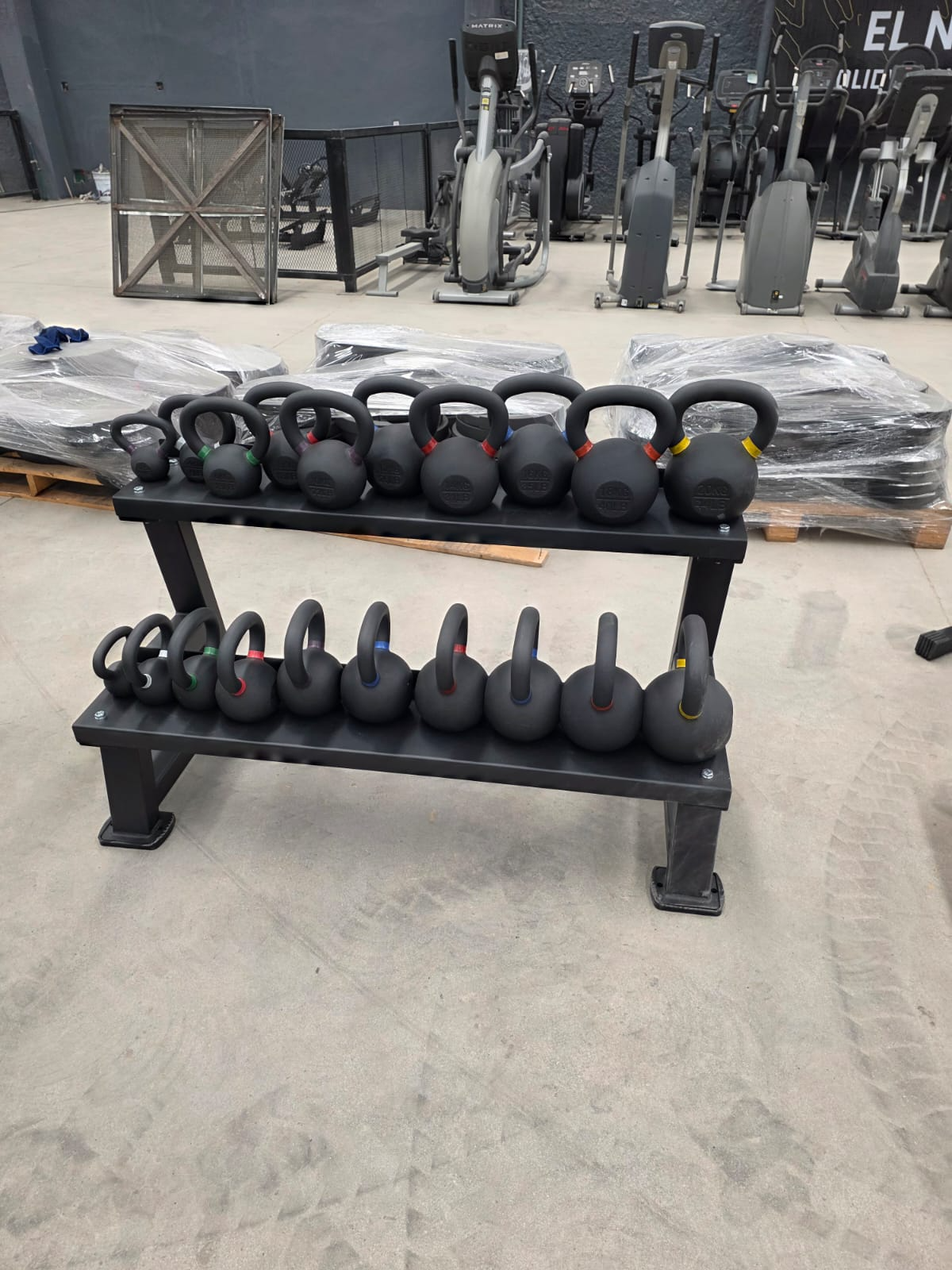 Kit de Kettlebells con Rack está diseñado para ofrecer una solución completa de entrenamiento funcio