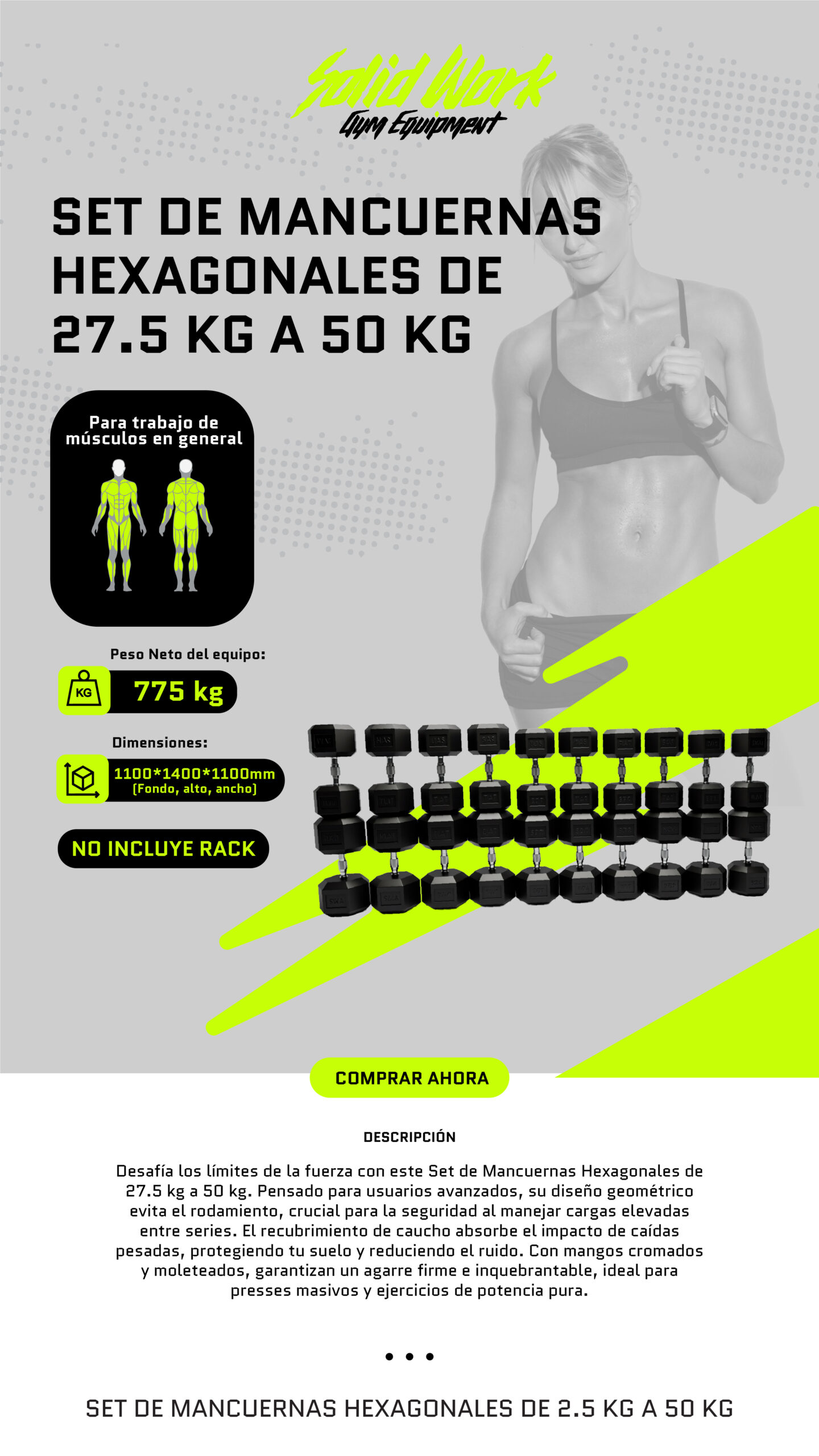 Set de mancuernas hexagonales de 27.5 kg a 50 kg (No incluye rack) cantidad